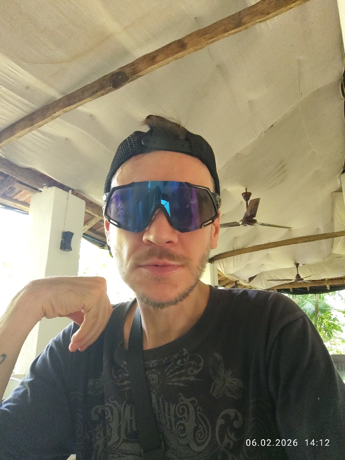- "A male individual is depicted in a close-up portrait, seated in an establishment in Arambol, India, on February 6, 2026, at 14:12" by FM-nQdx22, licensed under CC BY 4.0