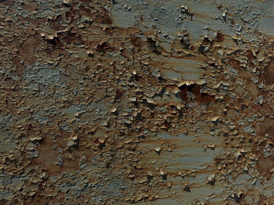 - "This image presents a close-up, vertical view of a severely weathered metal surface, located in the city of Bistritsa, Bulgaria" by FM-dHc953, licensed under CC BY 4.0