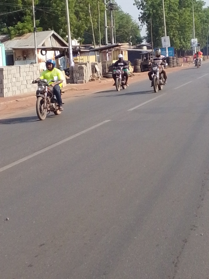 - "The image depicts a daytime street scene in Tamale, Ghana, featuring four individuals riding motorcycles on an asphalt road" by FM-2KSU42, licensed under CC BY 4.0