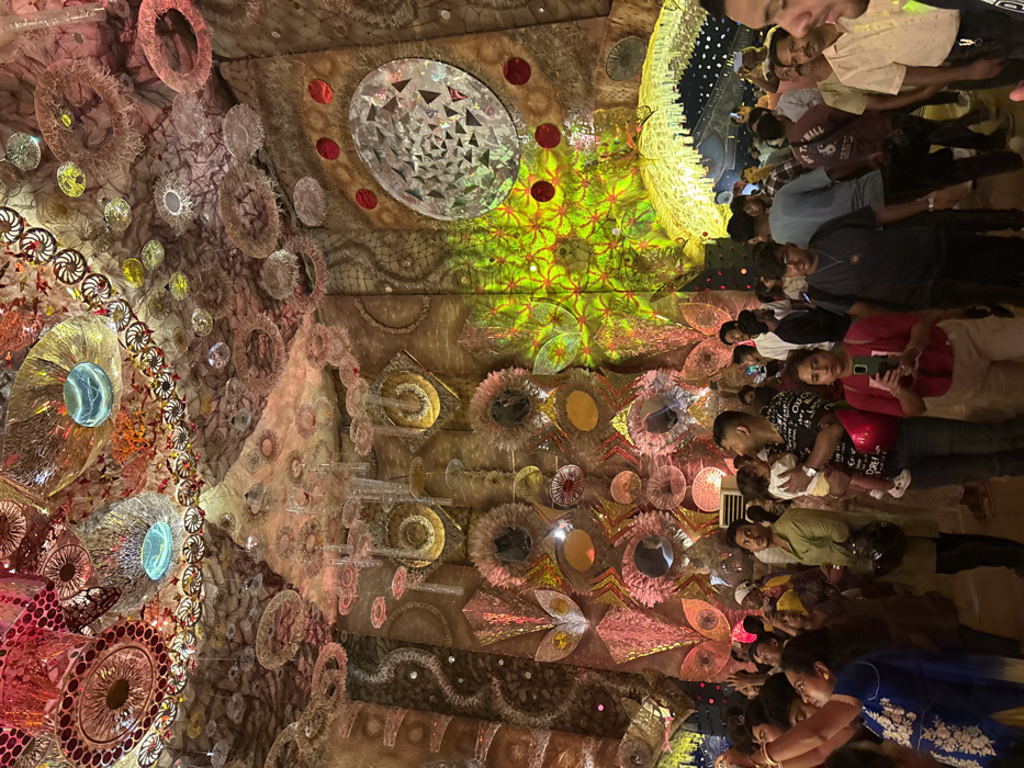 - "The image depicts a crowded interior space, likely a temporary structure or pandal, in Bidhannagar, India, illuminated with extensive and intricate decorations" by FM-KoaHv1, licensed under CC BY 4.0