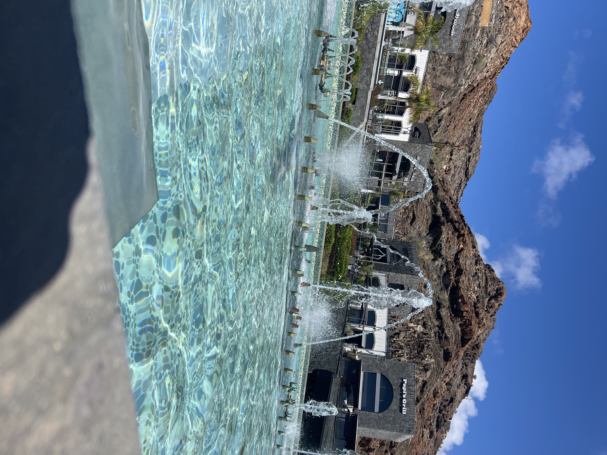 - "This image captures a bright, sunny outdoor scene in El Chaparral, Spain, centered on a multi-jet fountain with commercial buildings and mountains in the background" by FM-33L543, licensed under CC BY 4.0