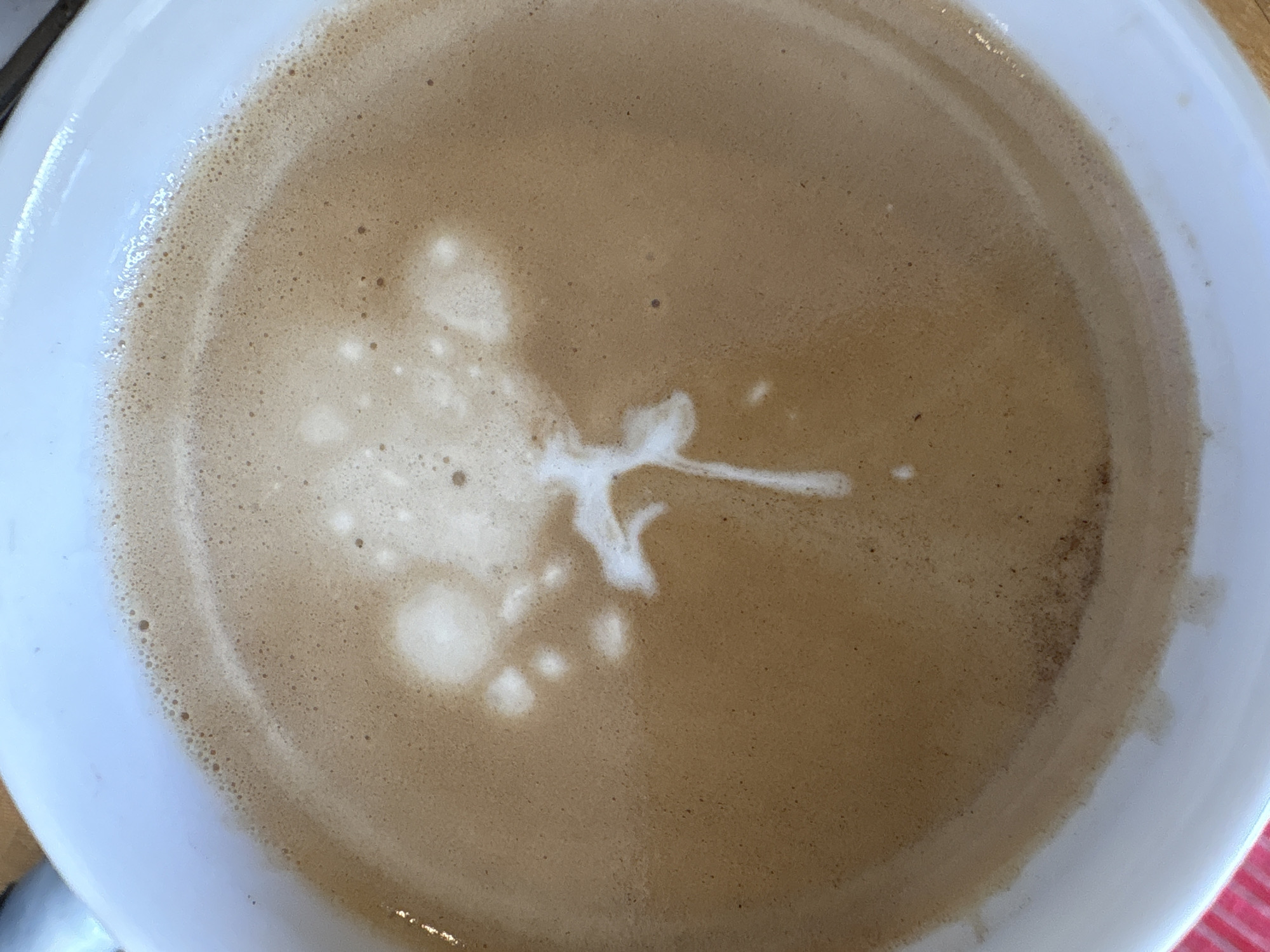 - "A close-up, top-down view of a white mug filled with a light brown coffee drink, likely a latte or cappuccino" by FM-kr1G73, licensed under CC BY 4.0