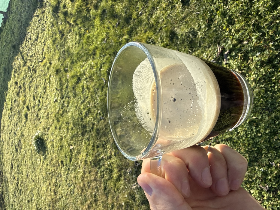 - "The image displays a clear glass mug containing a dark brown beverage topped with a substantial layer of light brown foam/crema" by FM-N0Dwf1, licensed under CC BY 4.0