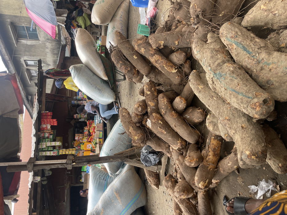 The image depicts an outdoor market scene in Ebute-Metta, Nigeria