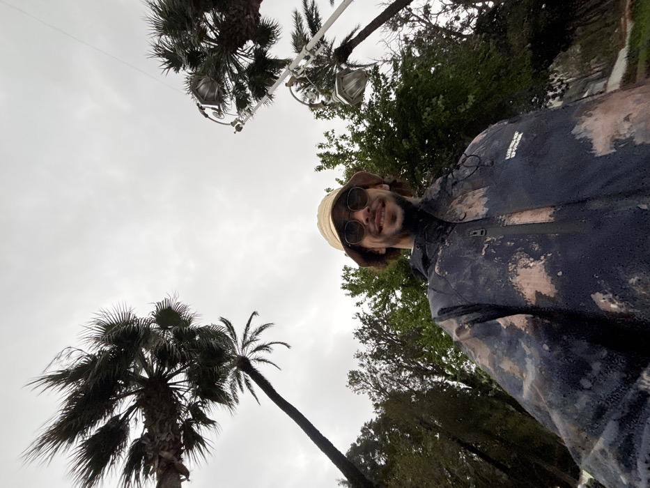 A low-angle selfie, taken in a public green space in Tétouan, Morocco, features an adult male in the foreground
