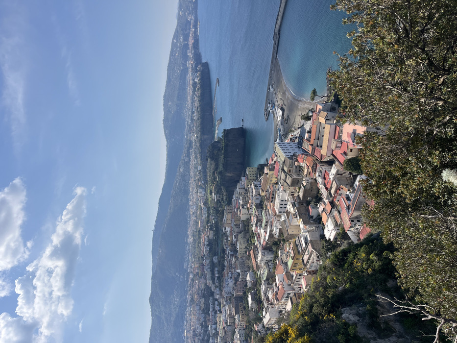 - "A high-angle panoramic view depicts the coastal town of Meta, Italy, under a clear blue sky with scattered white cumulus clouds" by FM-X3uic2, licensed under CC BY 4.0