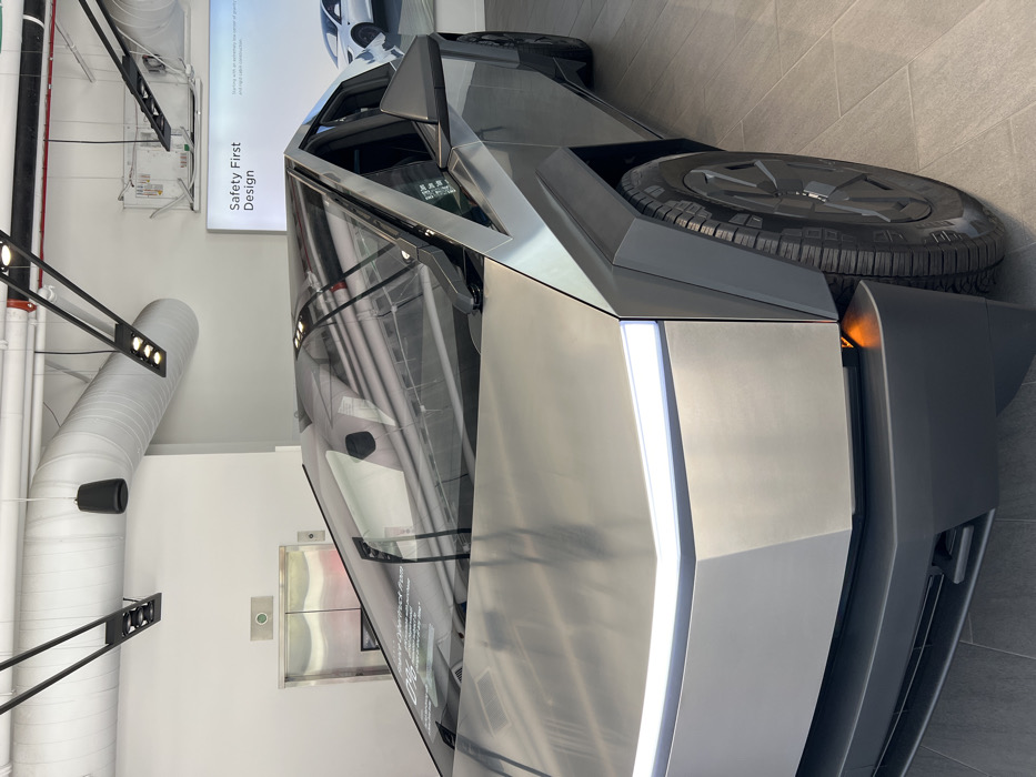 - "A silver-grey Tesla Cybertruck is centrally displayed indoors within a Tesla showroom, likely located in Santa Monica, United States" by FM-PcEqo1, licensed under CC BY 4.0