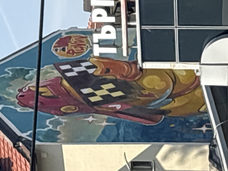 - "The image depicts a vibrant mural painted on the gable end of a building in Plovdiv, Bulgaria, confirmed by a partially visible circular sign bearing "ПЛОВДИВ" (Plovdiv) in Cyrillic" by FM-pruLu1, licensed under CC BY 4.0
