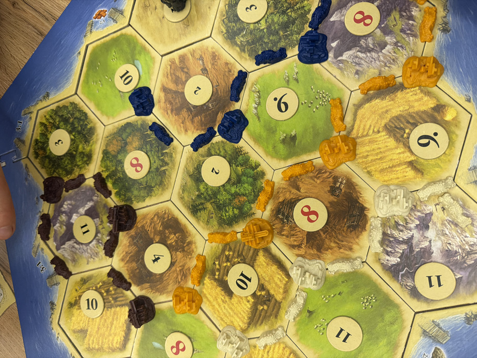 - "The image displays a Catan board game in progress, viewed from an overhead perspective, situated on a light-colored, flat surface" by FM-cheYL2, licensed under CC BY 4.0