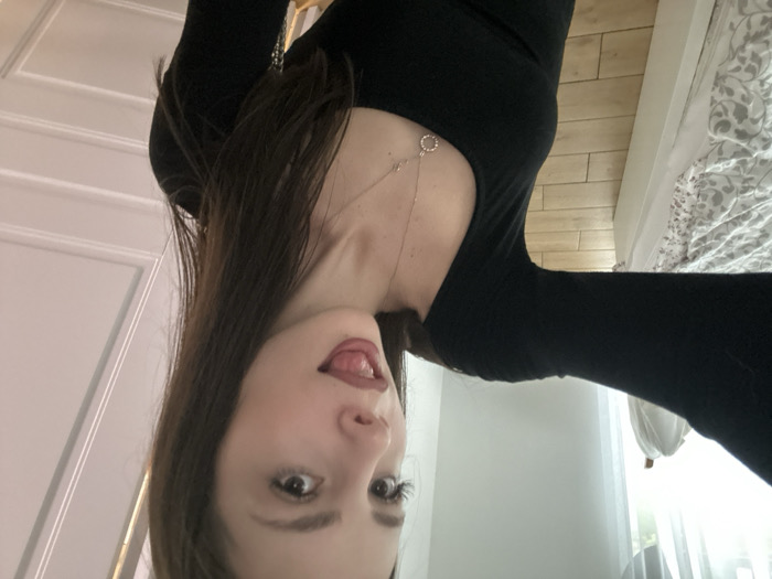 The scene depicts a young adult female posing for a selfie indoors, located in a room within Novosergievka, Russia