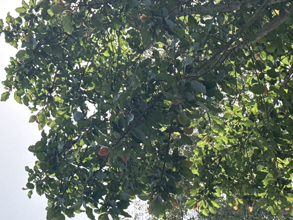- "The image depicts the upper canopy of a mature *Terminalia catappa* (Indian Almond) tree, viewed from a low angle looking upwards towards a bright, clear sky" by FM-jqYrS2, licensed under CC BY 4.0