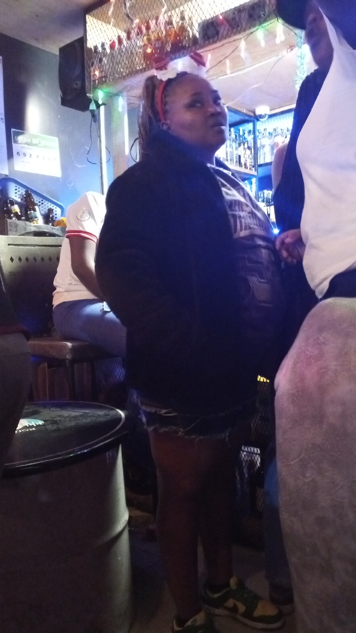 - "Inside a bar setting, a woman in a black jacket, graphic t-shirt, and denim shorts stands among other patrons" by FM-hTtyx1, licensed under CC BY 4.0