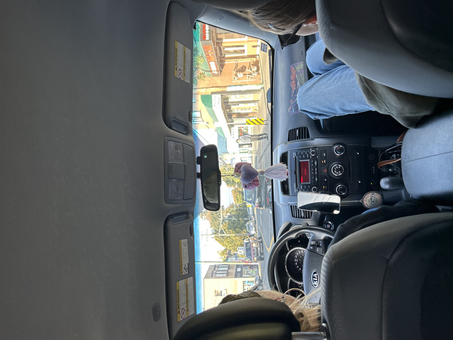 - "The image depicts the interior of a Kia vehicle, viewed from the rear passenger seat, looking forward through the windshield onto Hillside Avenue in Victoria, British Columbia, Canada" by FM-p02Wp2, licensed under CC BY 4.0