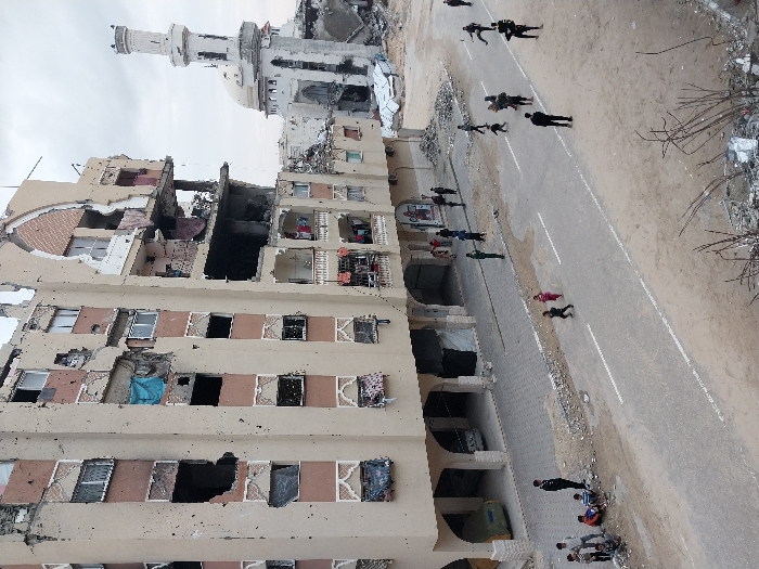 - "The image captures a severely damaged urban landscape in Khan Yunis, Palestinian Territory, under an overcast sky" by FM-2XCCl2, licensed under CC BY 4.0