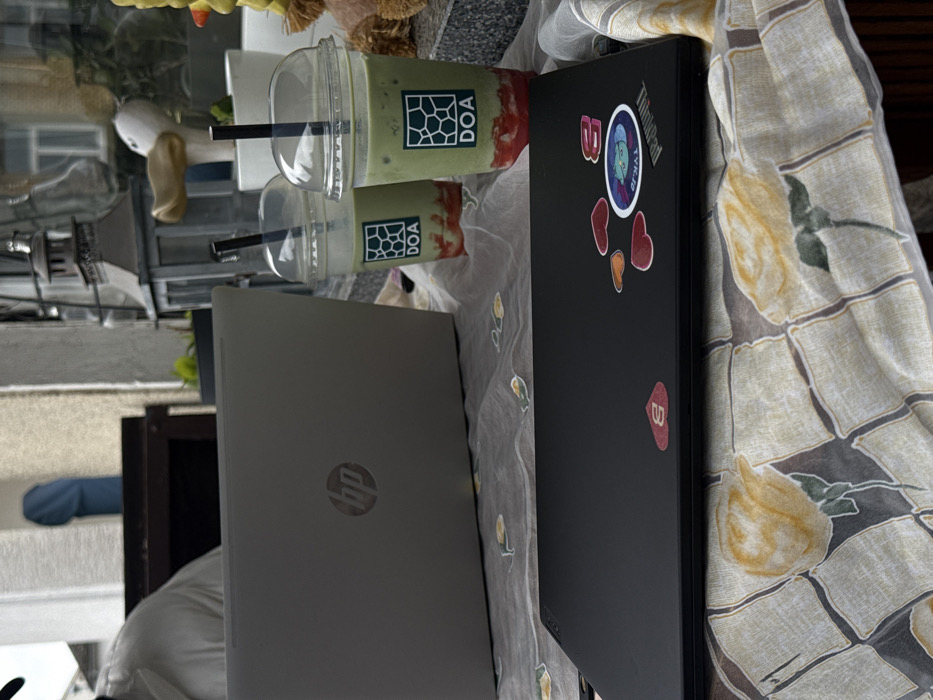 - "The image depicts an outdoor table scene in Bad Nauheim, Germany, featuring two laptops and two beverages" by FM-k63fK2, licensed under CC BY 4.0