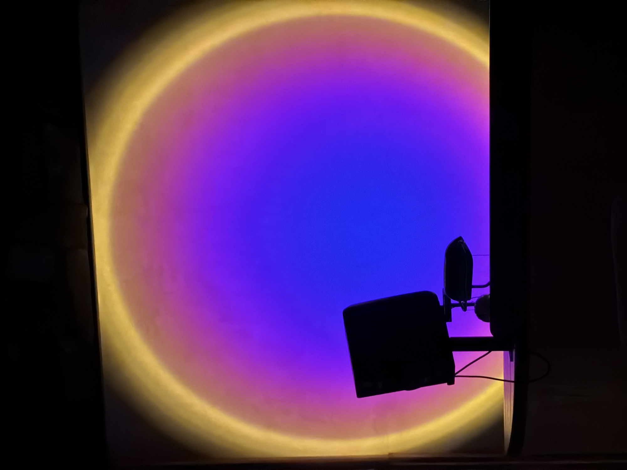 - "The image displays an indoor scene dominated by a large, circular light projection on a vertical surface, likely a wall or screen, in a darkened room" by FM-iZ0253, licensed under CC BY 4.0