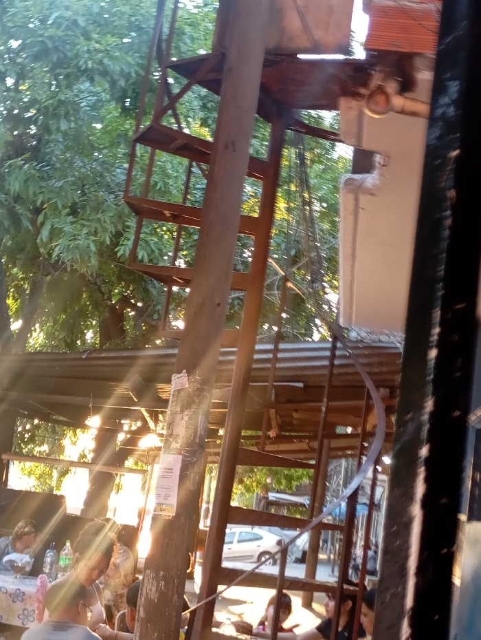 - "A partially obscured outdoor scene shows people gathered at a table beneath a corrugated metal awning" by FM-k5Dk42, licensed under CC BY 4.0