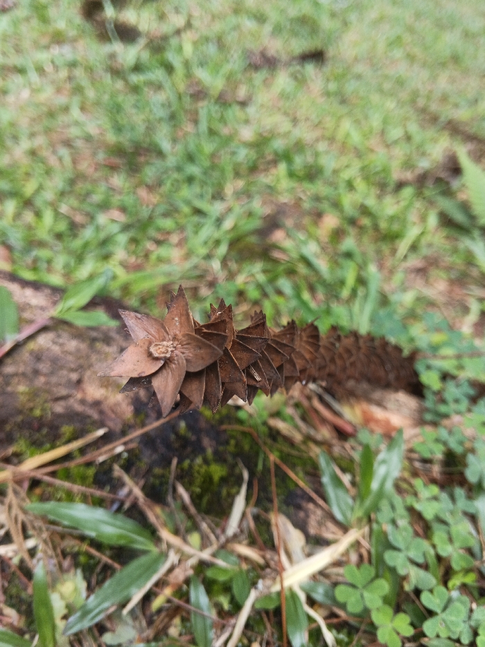 - "A brown, dried casuarina cone lies on a mossy log, surrounded by grass and clover" by FM-LFyiu1, licensed under CC BY 4.0