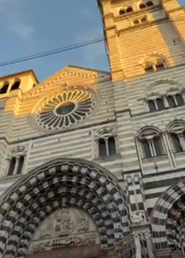 Cathedral of San Lorenzo in Genoa, Italy, from a low-angle perspective