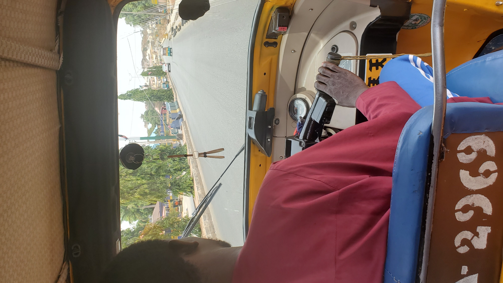 - "The image depicts the interior perspective from a passenger seat within a yellow Bajaj Keke Napep (motorized tricycle) in Jos, Nigeria, looking forward onto a road" by FM-EKytt2, licensed under CC BY 4.0