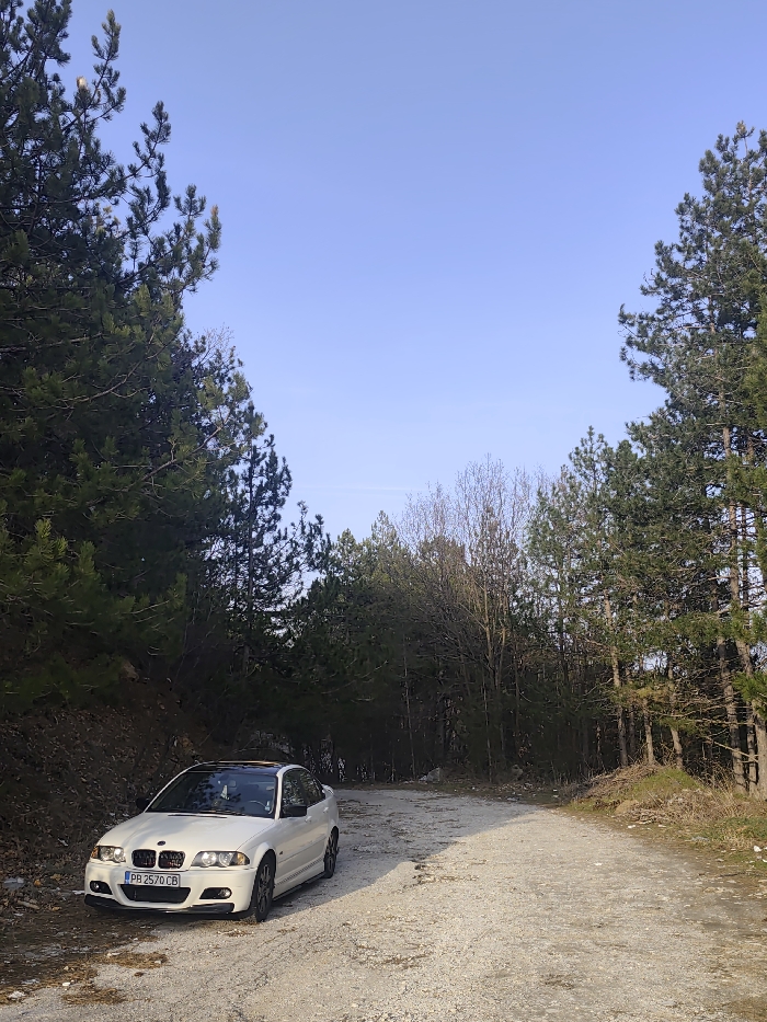 - "A white BMW E46 3-series two-door vehicle, bearing Bulgarian license plate PB 2570 CB, is parked stationary on a light-colored gravel road" by FM-pU3Cf2, licensed under CC BY 4.0