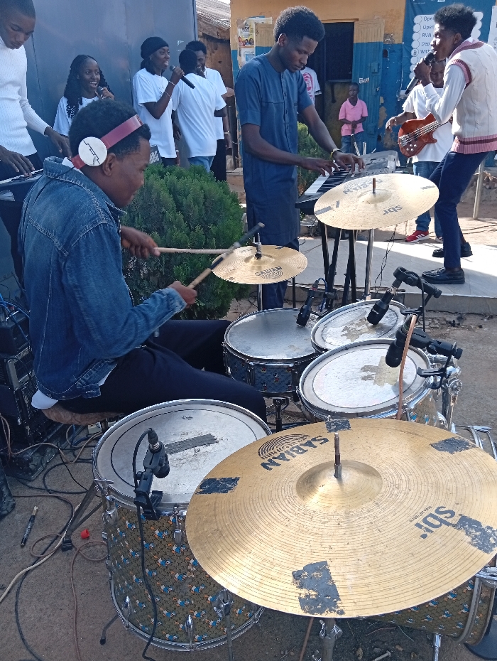 This image captures an outdoor musical performance in Jebbu Miango, Nigeria