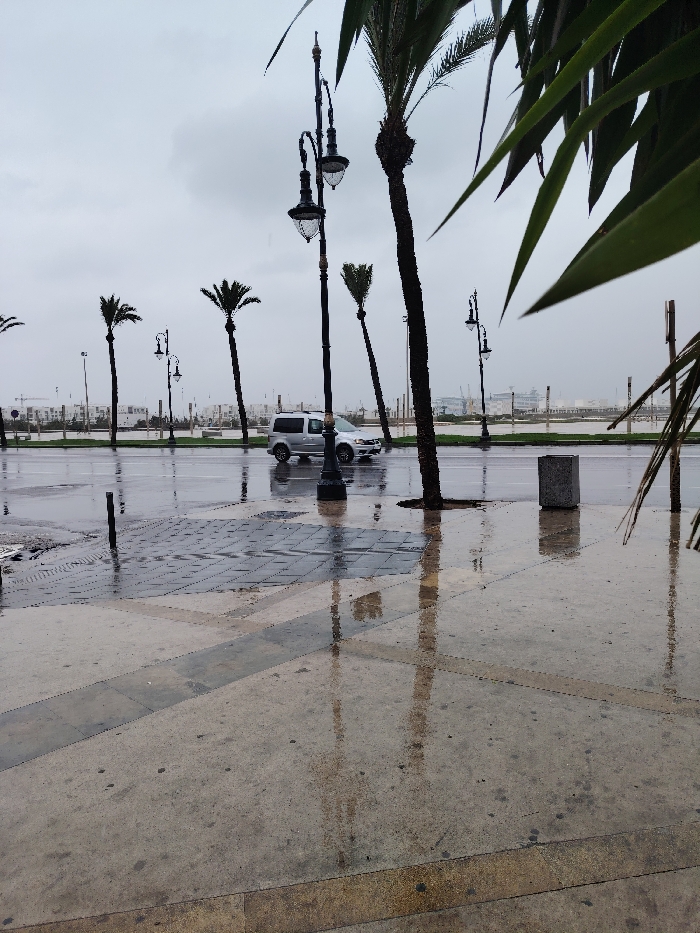 - "The image captures an urban coastal landscape on an overcast and wet day, indicative of a rainy environment, likely along the Corniche or port area in Tangier, Morocco" by FM-10g0q2, licensed under CC BY 4.0
