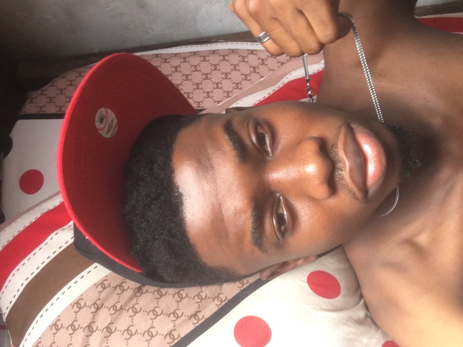 This close-up, high-angle selfie depicts a young dark-skinned male positioned in an indoor setting in Iranla, Nigeria