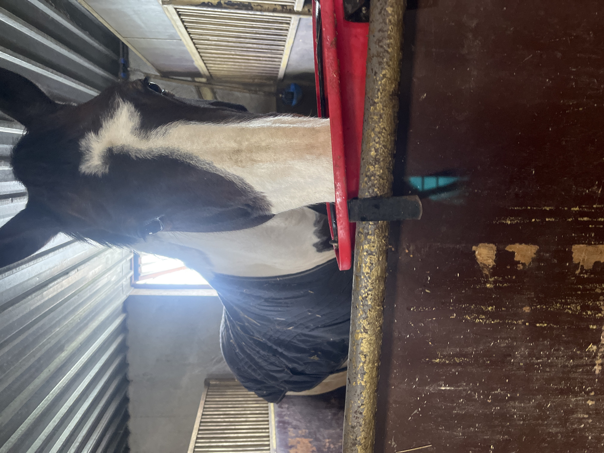- "A pinto horse, primarily dark brown with extensive white markings on its face and body, stands within a stable stall in Zmeyovo, Bulgaria" by FM-qlshF3, licensed under CC BY 4.0