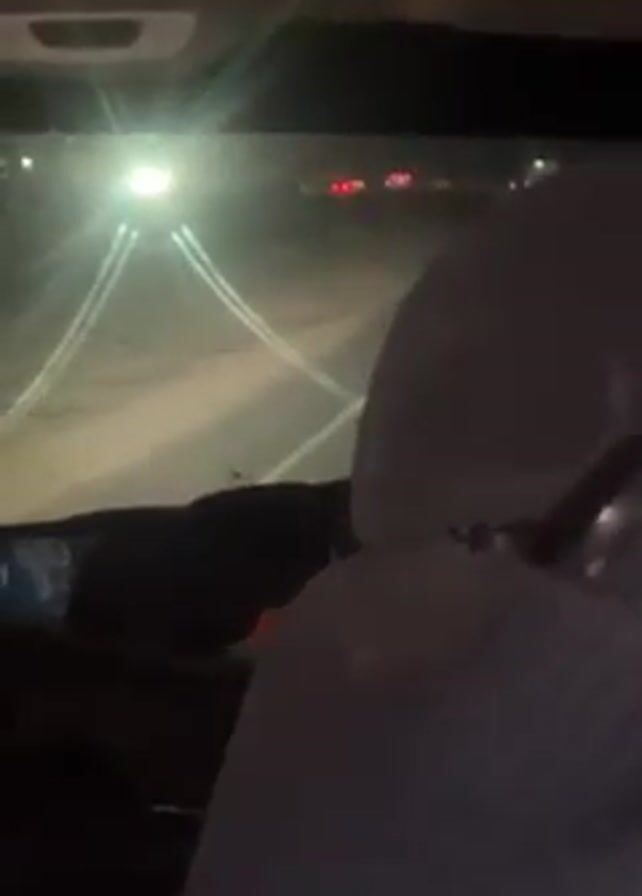 The video is taken from inside a car, showing the dashboard and a partially visible front seat headrest