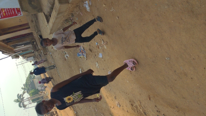The scene depicts a street in Masaka, Nigeria, under clear daylight