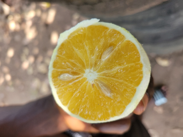 - "A halved citrus fruit is held centrally by a dark-skinned hand, positioned against a blurred outdoor background in Markurdi, Nigeria" by FM-m6iwH3, licensed under CC BY 4.0