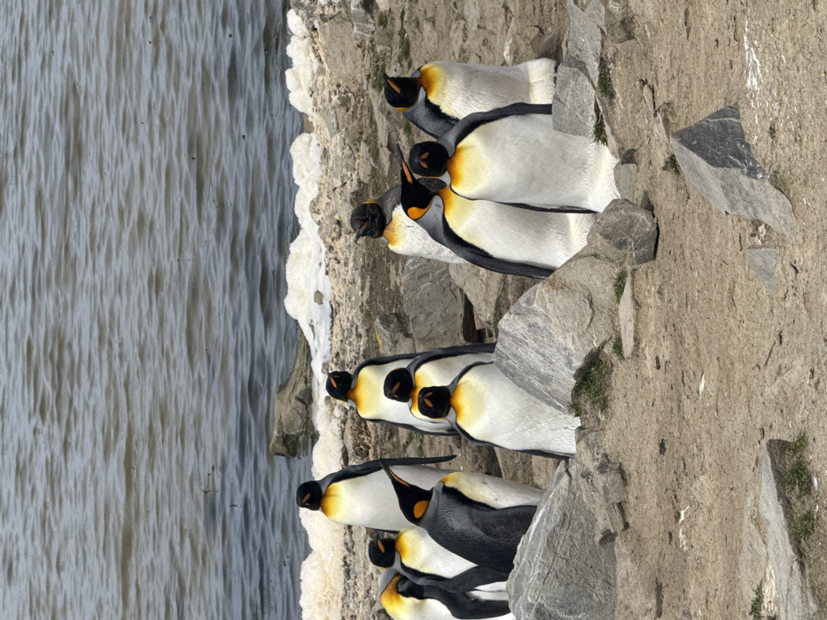 - "A group of approximately 13 King penguins stands on a rocky, sandy shoreline at Bluff Cove, Falkland Islands (Islas Malvinas)" by FM-x6Qwo1, licensed under CC BY 4.0