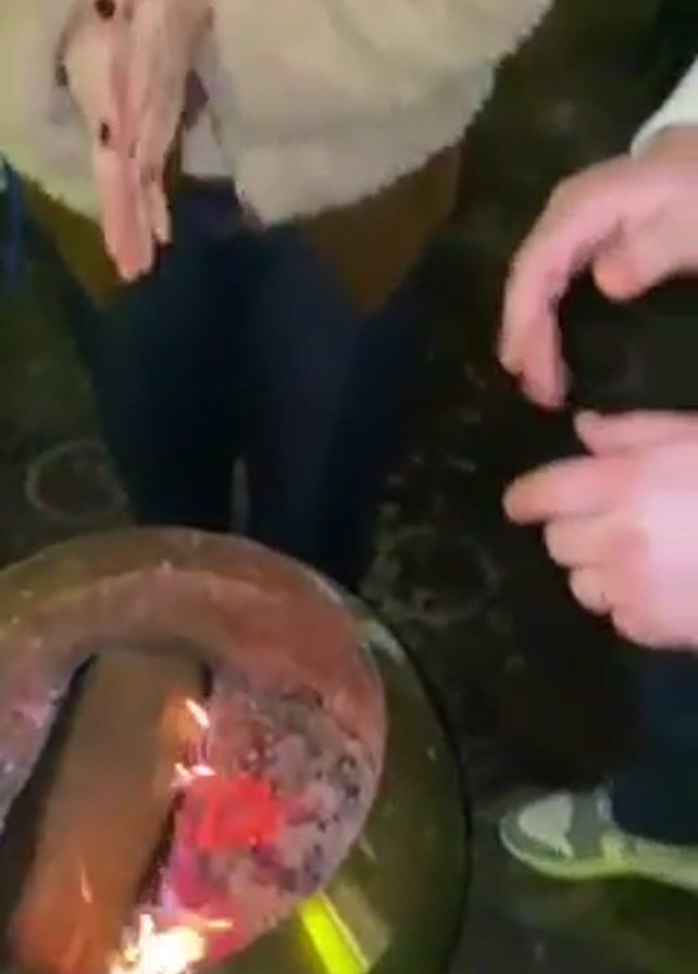 people warming their hands around a small fire pit in an outdoor setting
