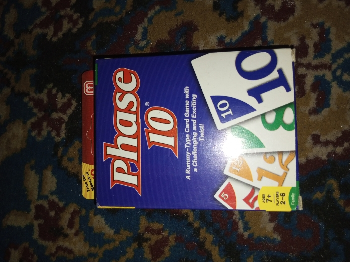 - "The image showcases a Phase 10 card game box against a patterned background" by FM-Rb2su2, licensed under CC BY 4.0