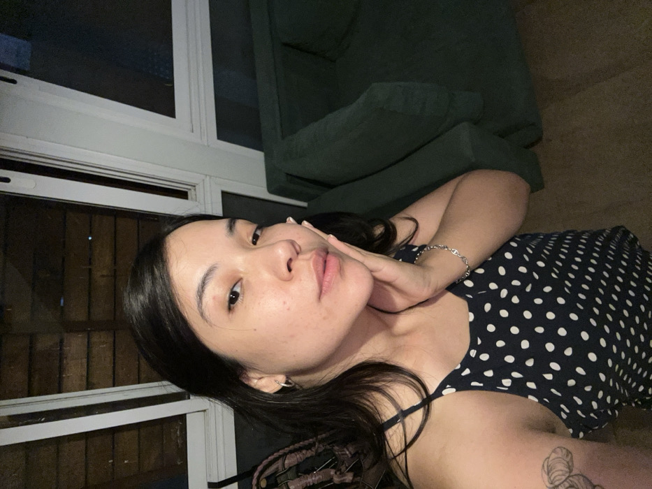 - "A young woman with dark hair is lying down, facing the camera, and resting her hand on her cheek" by FM-j80jY2, licensed under CC BY 4.0