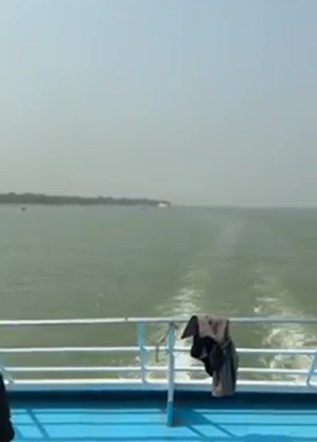 Here's a forensic description of the video: **Setting:** The video appears to be taken on a boat or ferry moving on a large body of water, likely a sea or ocean
