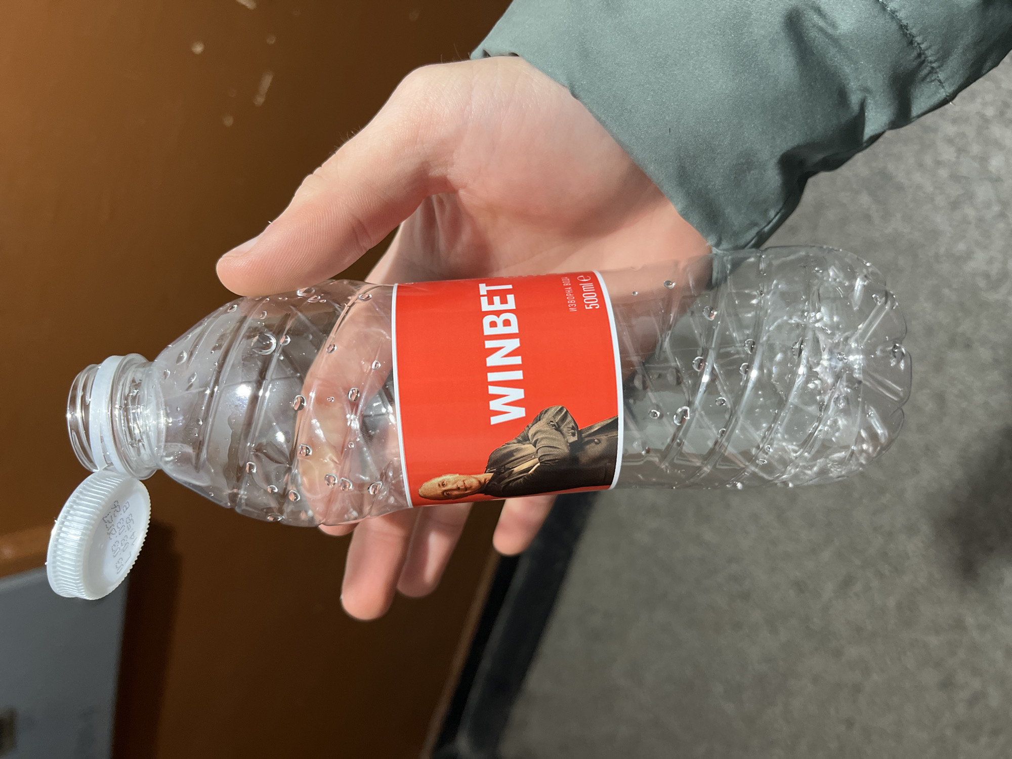 - "A human hand, partially obscured by a teal-green jacket sleeve, holds a mostly empty 500 ml clear plastic water bottle in Stara Zagora, Bulgaria" by FM-teTGu2, licensed under CC BY 4.0