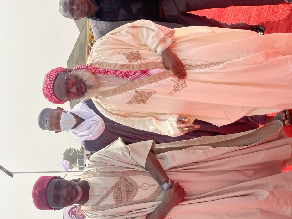 The image displays four men standing on a red carpet in an outdoor environment in Afaka, Nigeria