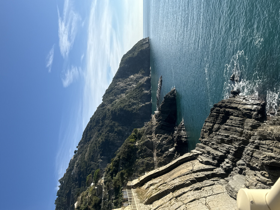 - "The image depicts a coastal scene in Manarola, Italy, looking eastward along the Ligurian coastline under a clear blue sky with sparse, wispy clouds" by FM-yjK1X2, licensed under CC BY 4.0