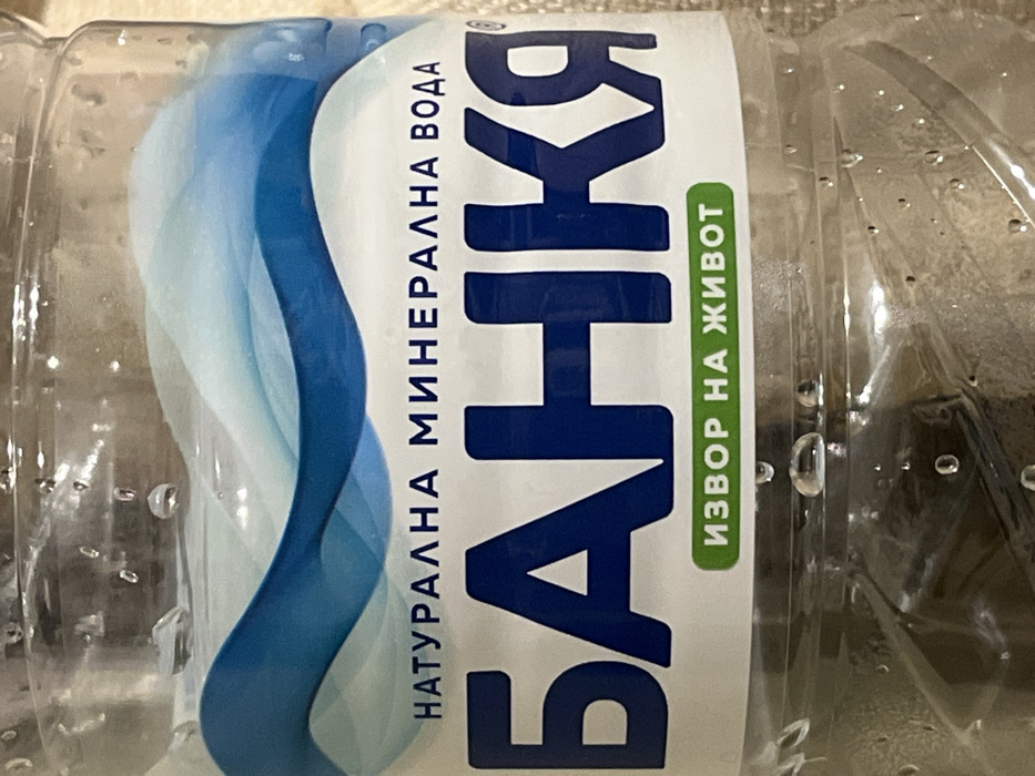 - "A close-up photograph displays the middle section of a transparent plastic bottle containing 'Bankya' natural mineral water" by FM-9pc972, licensed under CC BY 4.0