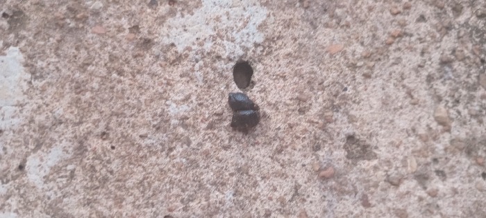 - "A close-up depicts a dark, clustered mass, likely feces, resting on a rough, textured surface of mottled tan and white" by FM-yERid2, licensed under CC BY 4.0