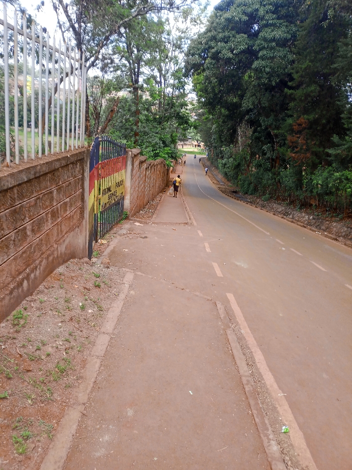 The image captures an asphalt road sloping downhill in Murang'a, Kenya