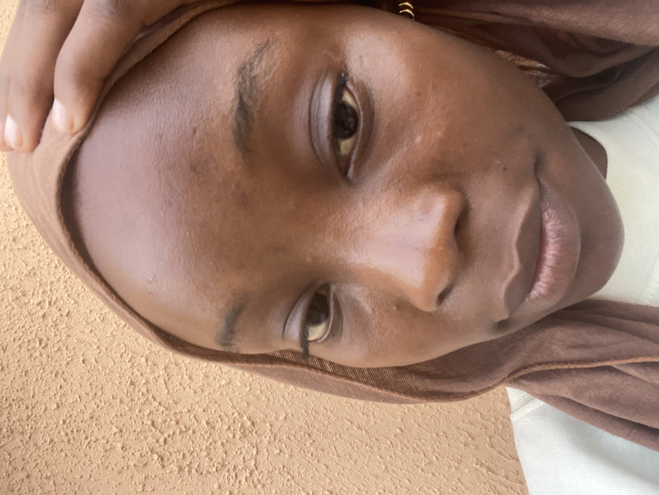 - "A close-up portrait features a dark-skinned woman wearing a brown headscarf" by FM-UtoJ42, licensed under CC BY 4.0