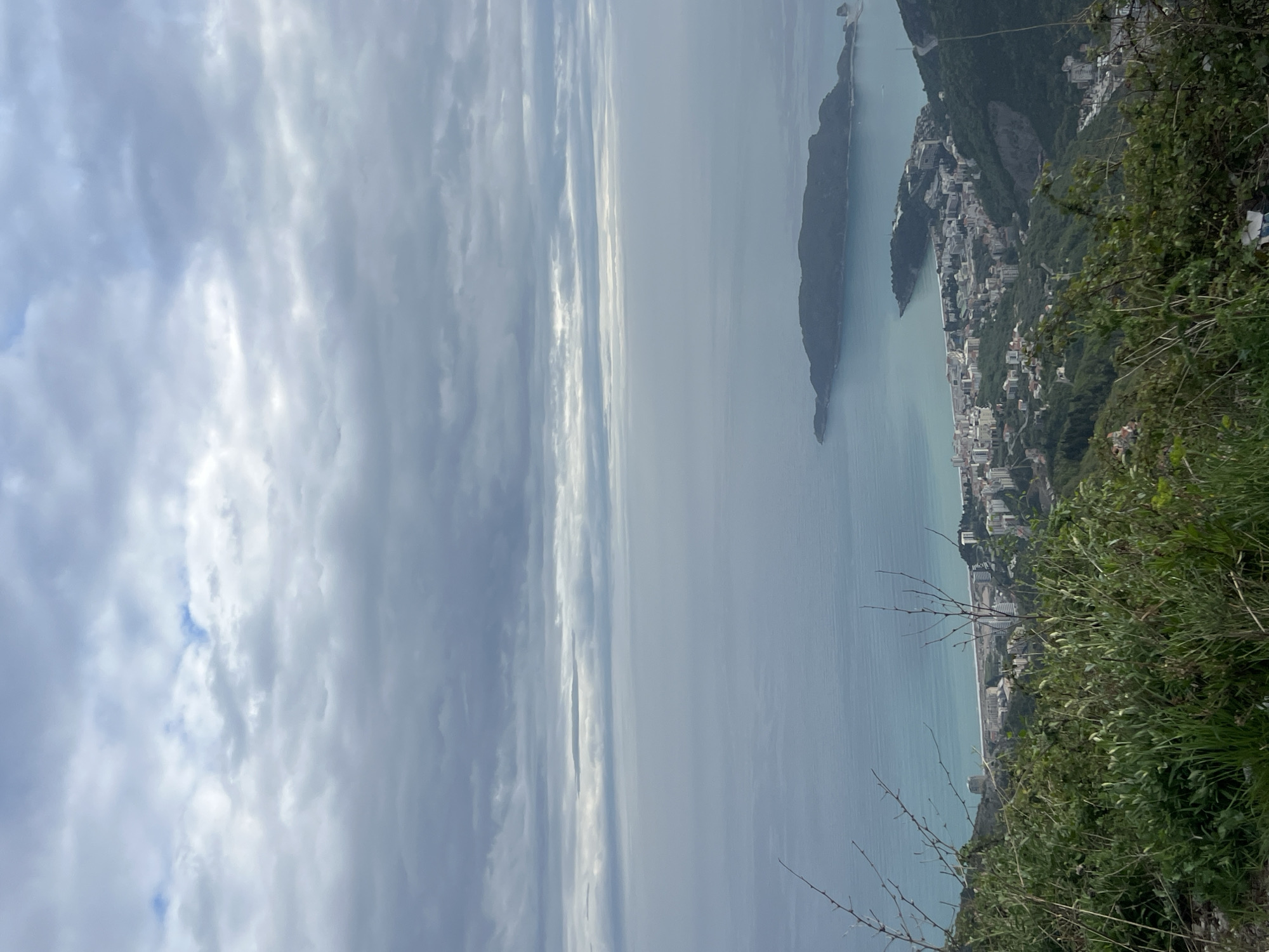 From an elevated vantage point in Brajici, Montenegro, an oblique view captures a hazy coastline