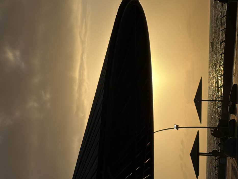 - "A silhouette of a tall, curved building stands against a yellow-tinted sky, likely at sunset" by FM-k41Xm2, licensed under CC BY 4.0
