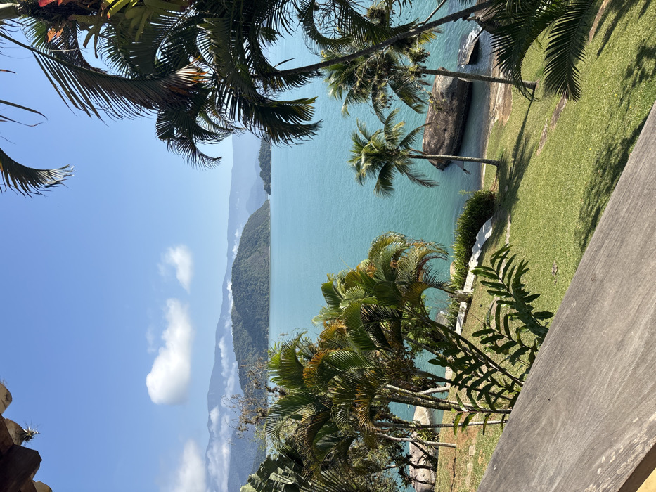 - "The image displays an elevated, panoramic view of a tropical coastal landscape in Paraty, Brazil, under a clear, bright blue sky with scattered white clouds" by FM-Xh1Qn2, licensed under CC BY 4.0