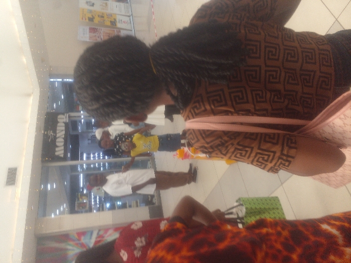 The image captures an indoor scene within a commercial building, likely a shopping mall, located in Sangotedo, Nigeria