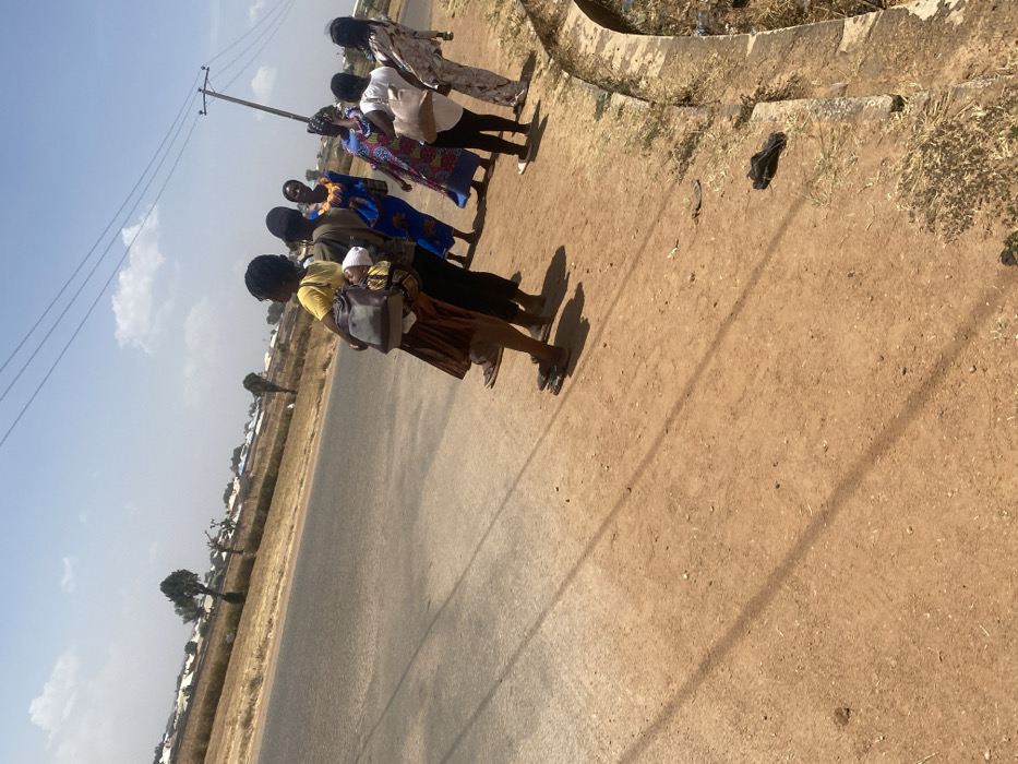 - "The image depicts an outdoor scene in Gwafan, Nigeria, showing seven individuals standing on a dirt shoulder adjacent to an asphalt road under a clear, bright sky with scattered clouds" by FM-Ke8RH2, licensed under CC BY 4.0
