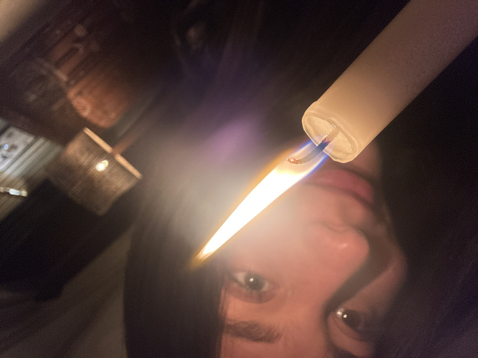 - "A selfie-style shot features a person holding a lit white candle close to their face" by FM-x4amk2, licensed under CC BY 4.0